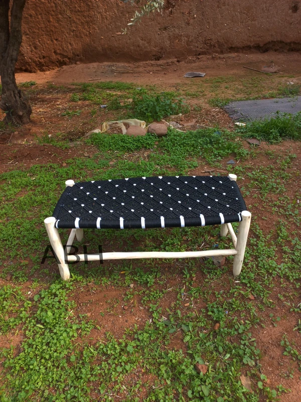 100% Natural Moroccan bench in wood. Item handmade by our Moroccan artisans, Practical in the lobby, to sit in the living room or simply decorative, the woven bench will bring a boho chic atmosphere. Also use it at the end of the bed in the bedroom.