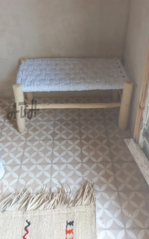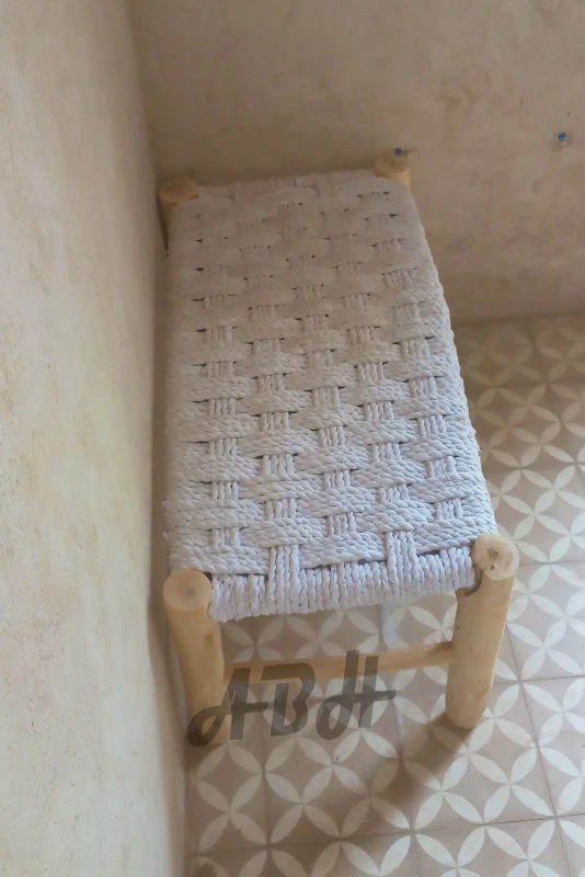 100% Natural Moroccan Cotton Macrame bench in wood. Item handmade by our Moroccan artisans, Practical in the lobby, to sit in the living room or simply decorative, the woven bench will bring a boho chic atmosphere. Also use it at the end of the bed in the bedroom.