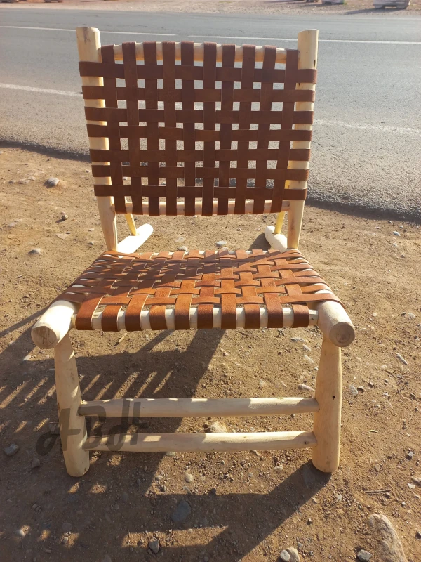 100% Natural Moroccan armchair in wood and nude leather. Item handmade by our Moroccan artisans, Practical in the lobby, to sit in the living room or simply decorative, the woven leather armchair will bring a boho chic atmosphere. Also use it on a terrace.